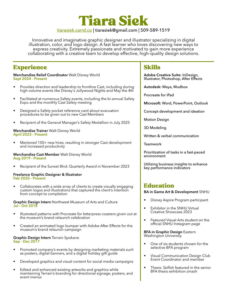 I received my original BFA in Visual Communication Design from Eastern Washington University. During my time at EWU, I was the event coordinator for VCDClub, coordinating the club's involvement in the Girl Scouts' STEM Fair, Cheney Mayfest, and Terrain's Bazaar. I have worked as a graphic design intern for Terrain Spokane and the Northwest Museum of Arts and Culture in Spokane, WA.
